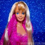 Hello! I am hoping you can help me. I have recently acquired a Barbie Cosmetics set with the Angel Face cameo on it. It is a gold and white set, containing a locket necklace and a locket bracelet. Both lockets contain a glass mirror and lip gloss. The necklace locket is “Cherry Frost” and the bracelet locket is “Grape Sparkle.” The cameo is white and looks like a classic ivory camo in a gold setting. The setting has floral design. Both the back and the inside of the locket contain the “Barbie” name logo with a copyright tag. They have a sticker on the back which indicates “Mfg for Mattel Hawthorne CA.” The cameos are ovals, and roughly 2″ tall.