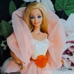 Gift Giving Barbie, 1988 edition, has become one of my favorite Barbie dolls right now! For some time, she was on my wish list, but it was not until I had her in my hands that I could appreciate how beautiful this Barbie is. I received her without her original box but new with all her new accessories too. I had to wash her hair which felt somewhat sticky and when it dried I was amazed at the spectacular hair she has! I have to say that hair is everything! Although it is not the same material that was used in Barbie dolls in the early 80’s I loved the waves it has and that I can mold it with my fingers.